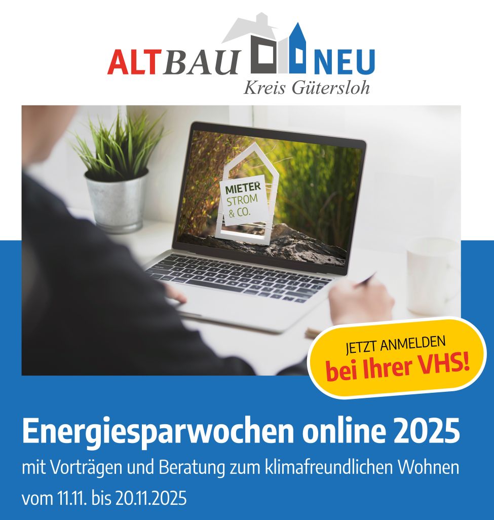 Antworten darauf bieten die Energiesparwochen im Kreis Gütersloh vom 11. bis 20. November 2025 im Rahmen von sechs Online-Vorträgen.